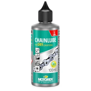 MOTOREX CHAINLUBE FOR DRY CONDITIONS przeznaczony jest do smarowania łańcuchów w suchych warunkach, idealny na szutry, suche trasy MTB i letnie przejazdy szosowe.